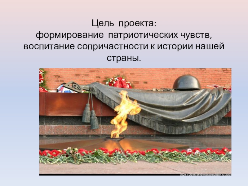 Слайд 3Цель проекта: формирование патриотических чувств, воспитание сопричастности к истории нашей страны.