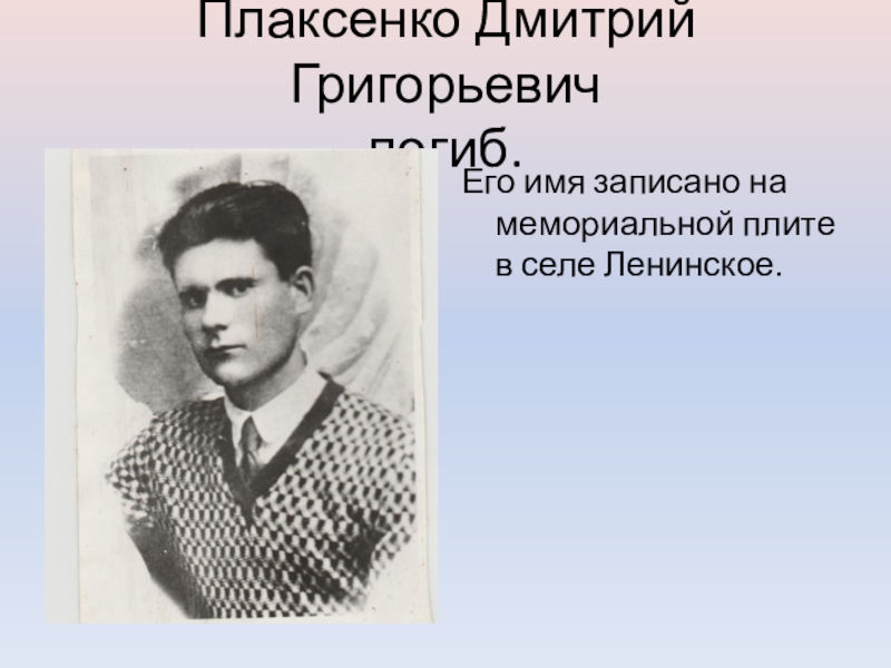 Слайд 20Плаксенко Дмитрий Григорьевич погиб.
