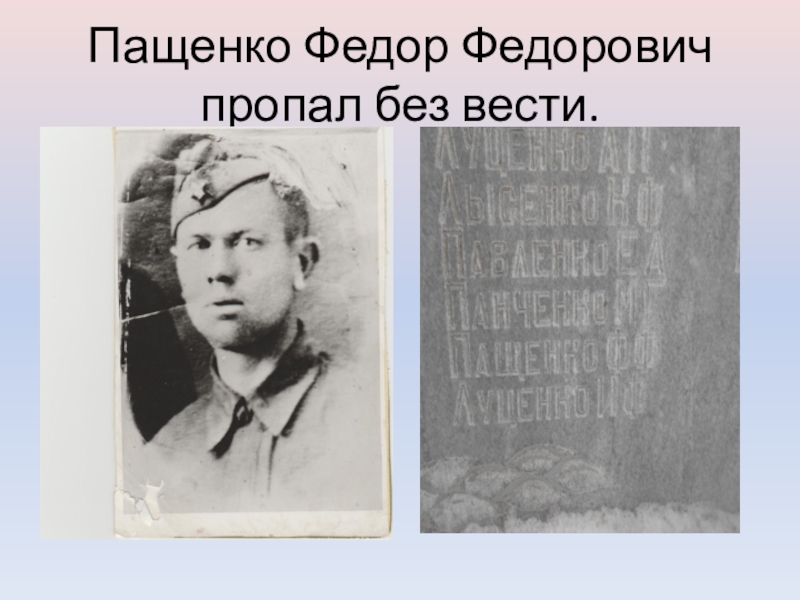 Слайд 19Пащенко Федор Федорович пропал без вести.