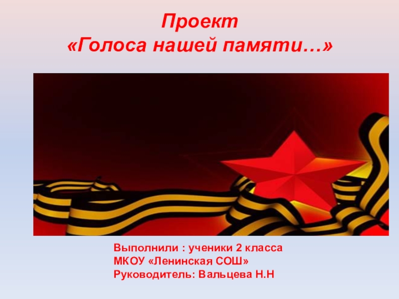 Проект«Голоса нашей памяти…»Выполнили : ученики 2 классаМКОУ «Ленинская СОШ»Руководитель: Вальцева Н.Н