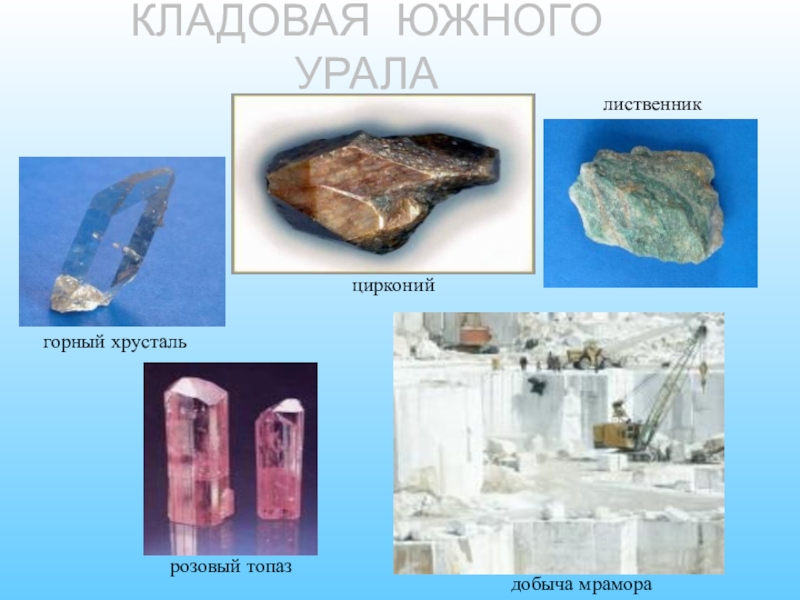 КЛАДОВАЯ ЮЖНОГО УРАЛАцирконийлиственникдобыча мраморагорный хрустальрозовый топаз