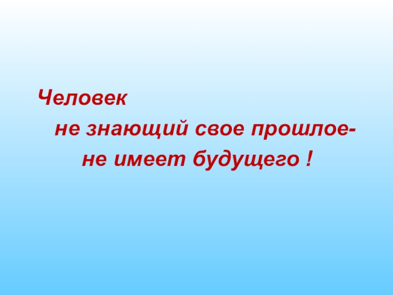 Человек  не знающий свое прошлое- 		 не имеет будущего !