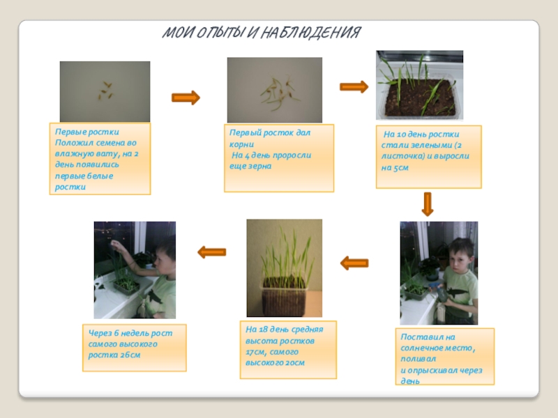 На 10 день ростки стали зелеными (2 листочка) и выросли на 5см