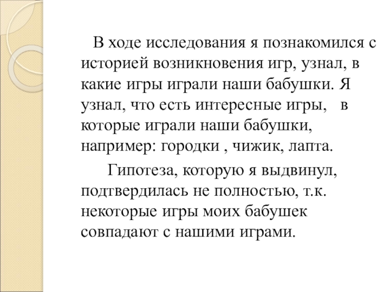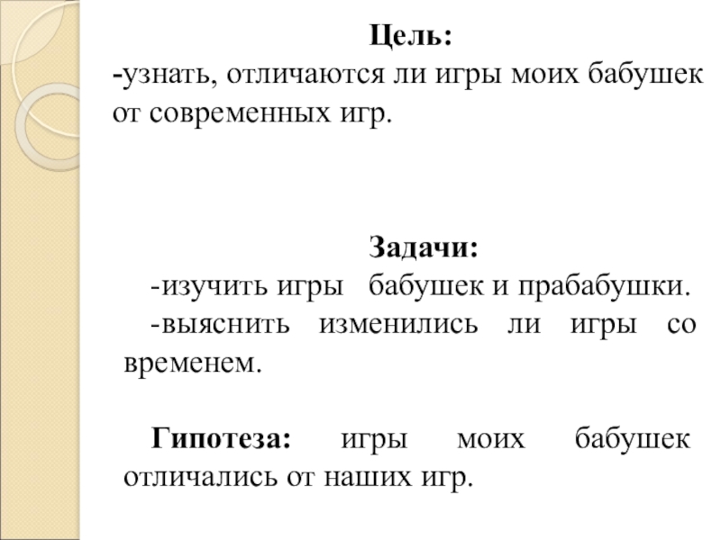 Гипотеза: игры моих бабушек отличались от наших игр.