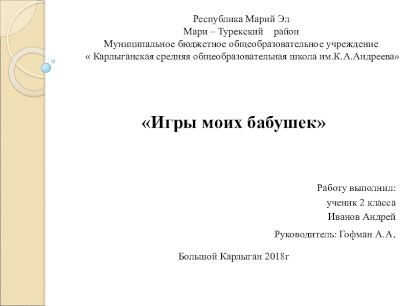Руководитель: Гофман А.А.