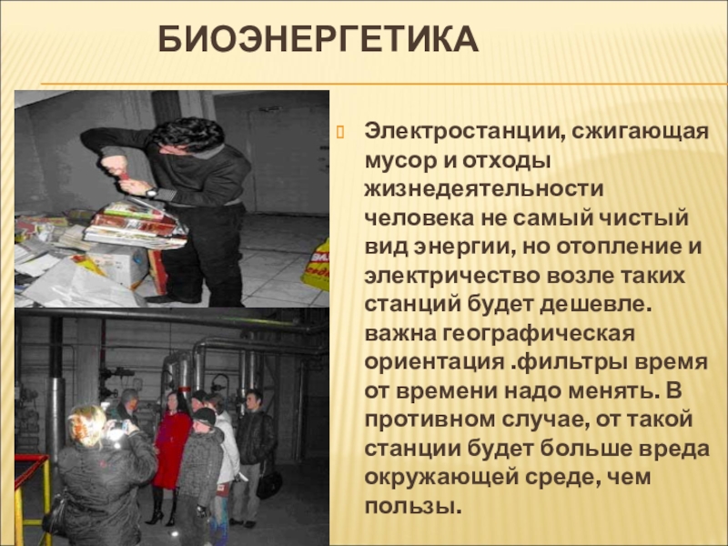 сжигающая мусор и отходы жизнедеятельности человека не самый чистый вид энергии, но отопление и электричество возле таких станций будет дешевле. важна географическая ориентация .фильтры время от времени надо менять. В противном случае, от такой станции будет больше вреда окружающей среде, чем пользы.