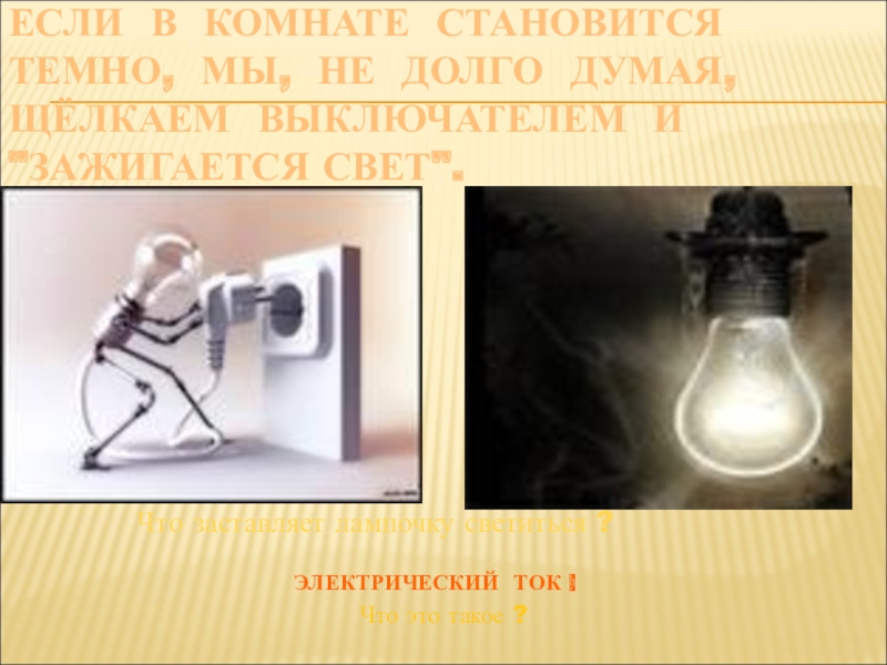Слайд 9ЕСЛИ В КОМНАТЕ СТАНОВИТСЯ ТЕМНО, МЫ, НЕ ДОЛГО ДУМАЯ, ЩЁЛКАЕМ ВЫКЛЮЧАТЕЛЕМ