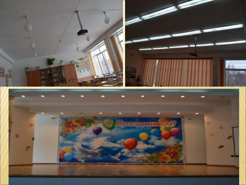 -Установка точечных ламп в актовом зале.