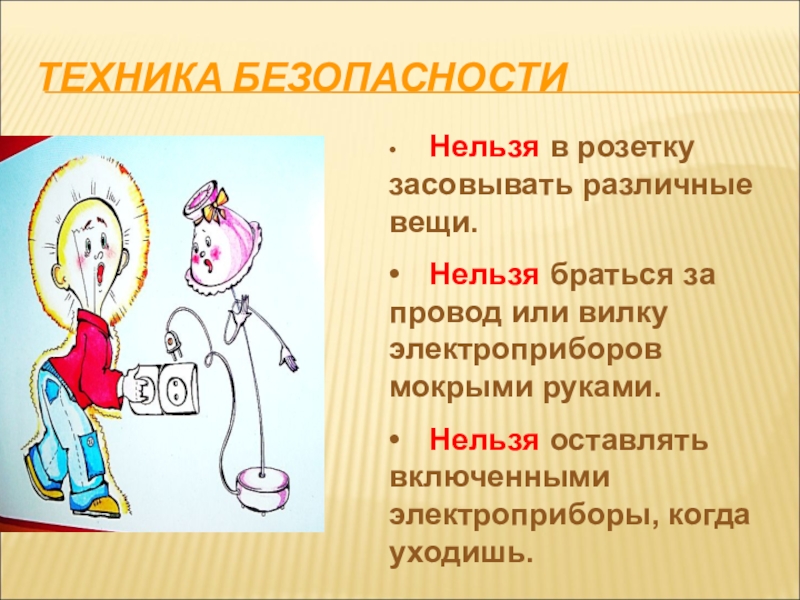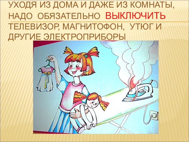 • Нельзя оставлять включенными электроприборы, когда уходишь.