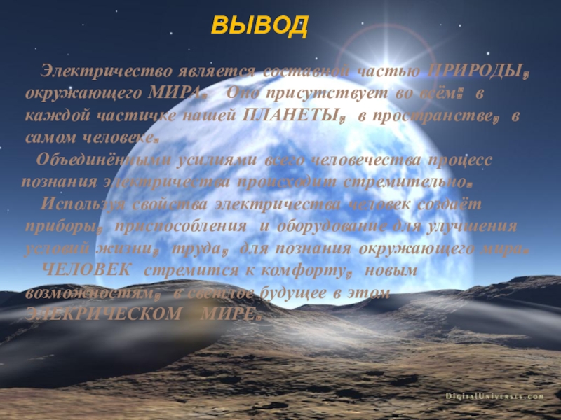 ЧЕЛОВЕК стремится к комфорту, новым возможностям, в светлое будущее в этом ЭЛЕКРИЧЕСКОМ МИРЕ.