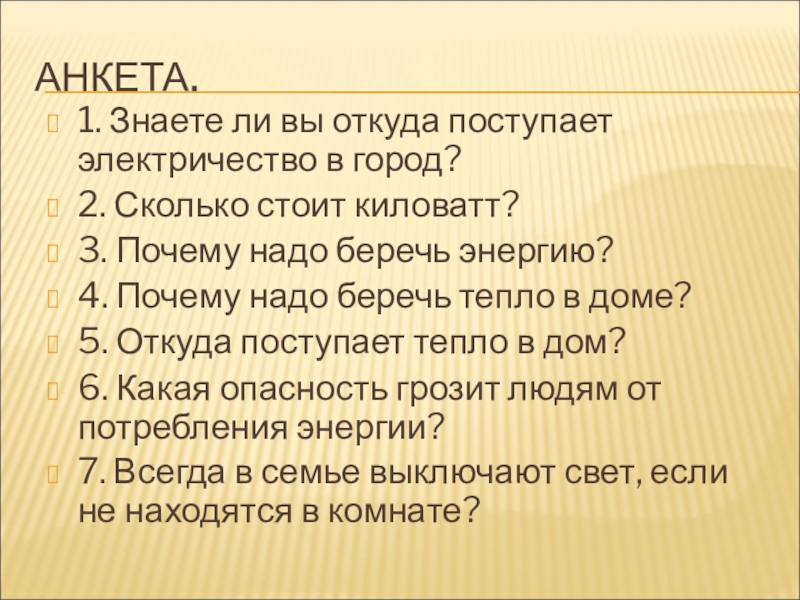 1. Знаете ли вы откуда поступает электричество в город?