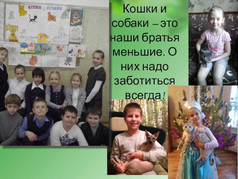 Слайд 8Кошки и собаки – это наши братья меньшие. О них надо заботиться