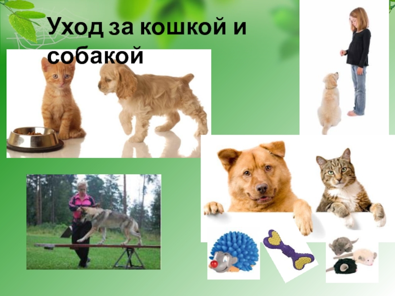 Слайд 9Уход за кошкой и собакой