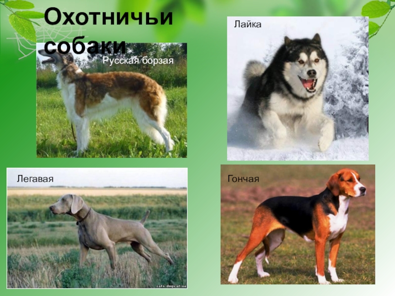 Русская борзаяЛайкаЛегаваяГончаяОхотничьи собаки