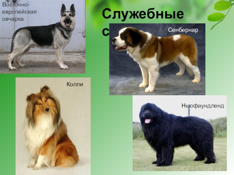Восточно-европейская овчаркаСлужебные собакиСенбернарНьюфаундленд Колли