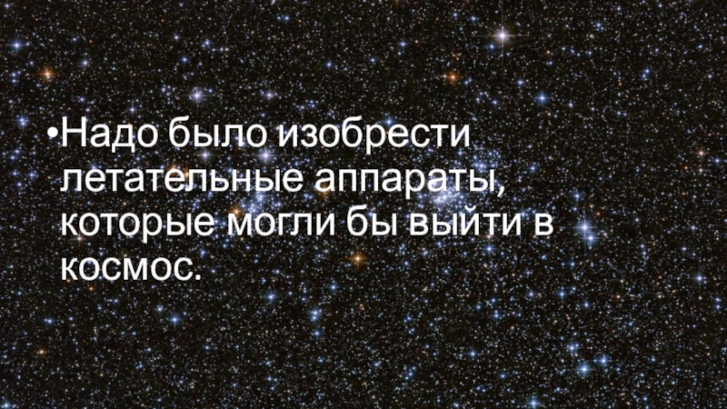 Слайд 11Надо было изобрести летательные аппараты, которые могли бы выйти в космос.