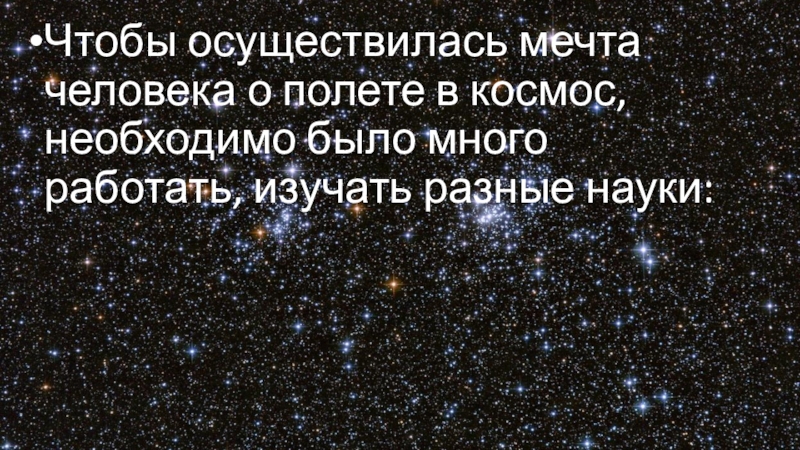Чтобы осуществилась мечта человека о полете в космос, необходимо было много работать, изучать разные науки: