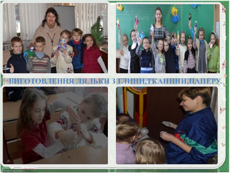 Слайд 14Виготовлення ляльки з глини,тканини,паперу.