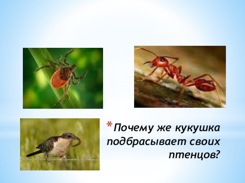 Слайд 15Почему же кукушка подбрасывает своих птенцов?