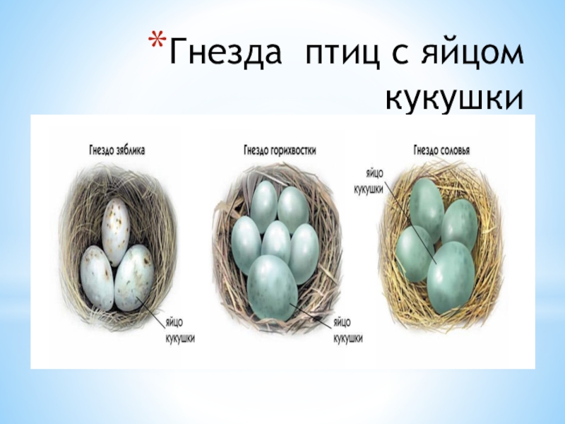 Выяснить, в гнёзда каких птиц кукушка подбрасывает своё потомство