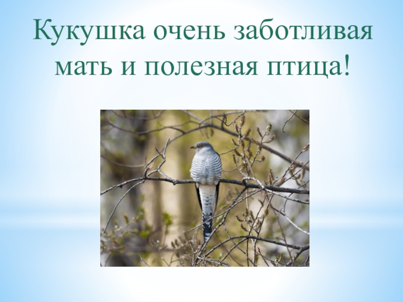 Слайд 18Кукушка очень заботливая мать и полезная птица!