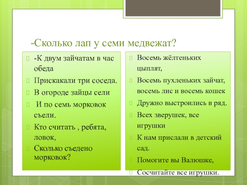 Восемь пухленьких зайчат, восемь лис и восемь кошек