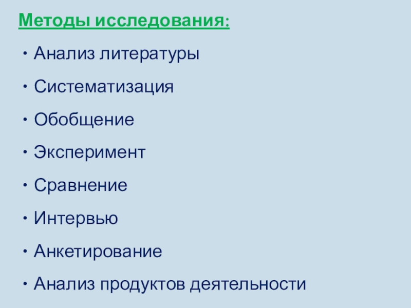 Слайд 7Методы исследования: