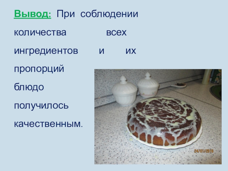 Слайд 25Вывод: При соблюдении количества всех ингредиентов и их пропорций
