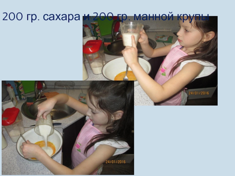 Слайд 22200 гр. сахара и 200 гр. манной крупы