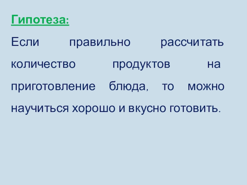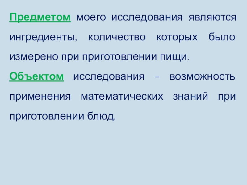 Объектом исследования – возможность применения математических знаний при приготовлении блюд.
