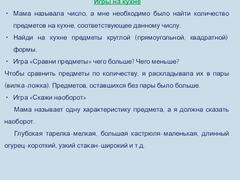 Мама называет одну характеристику предмета, а я должна сказать наоборот.