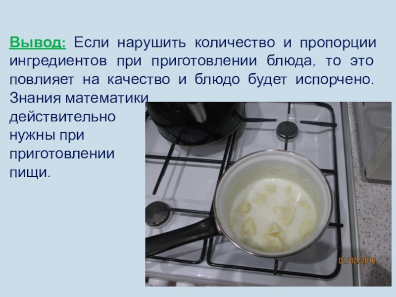 это повлияет на качество и блюдо будет испорчено. Знания математики