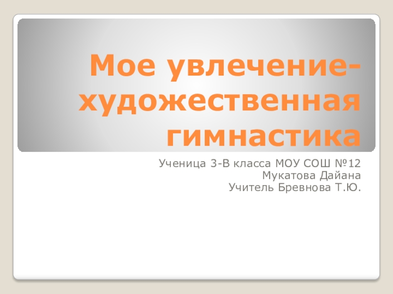 Мое увлечение-художественная гимнастикаУченица 3-В класса МОУ СОШ №12Мукатова ДайанаУчитель Бревнова Т.Ю.