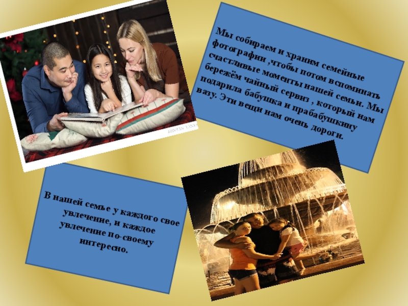 В нашей семье у каждого свое увлечение, и каждое увлечение по-своему интересно.