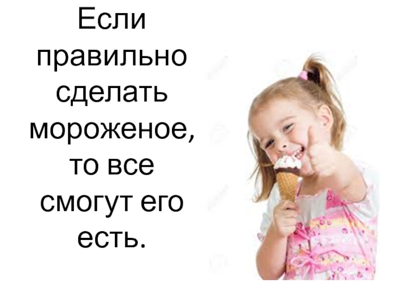 Слайд 6Если правильно сделать мороженое, то все смогут его есть.