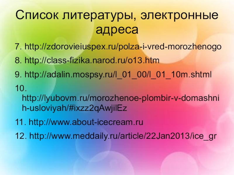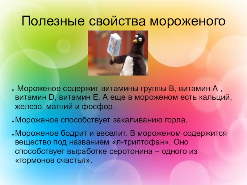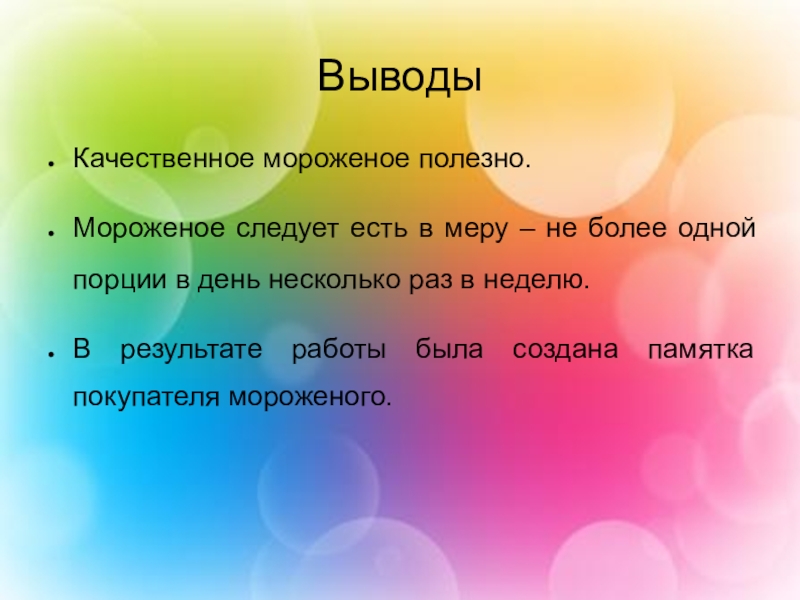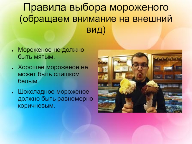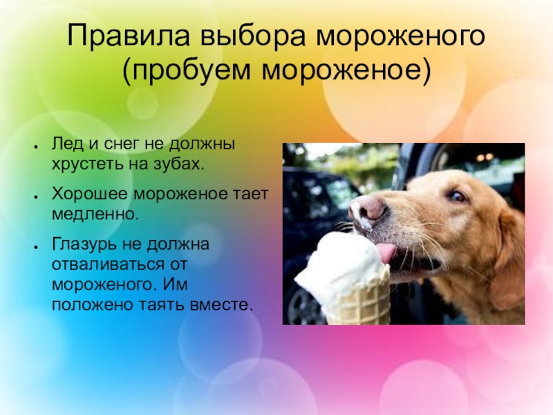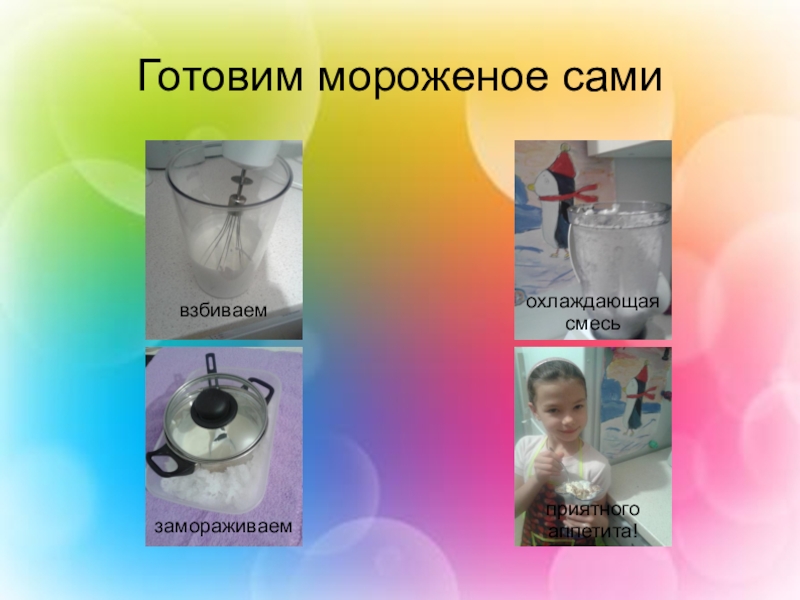 Задачи: научиться собирать и систематизировать информацию из различных источников (интернет, книги, телепередачи); познакомиться с видами мороженого, его историей, технологией изготовления; приготовить мороженое без использования холодильника; познакомиться с некоторыми приемами работы в текстовом редакторе.