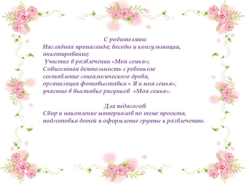 •Создание системы занятий и совместной деятельности: «ребёнок - родитель» по данной проблеме.