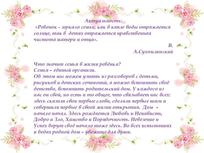 «Ребенок - зеркало семьи; как в капле воды отражается