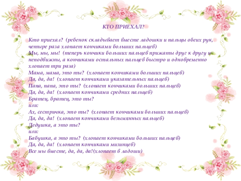 Кто приехал? (ребенок складывает вместе ладошки и пальцы обеих рук,