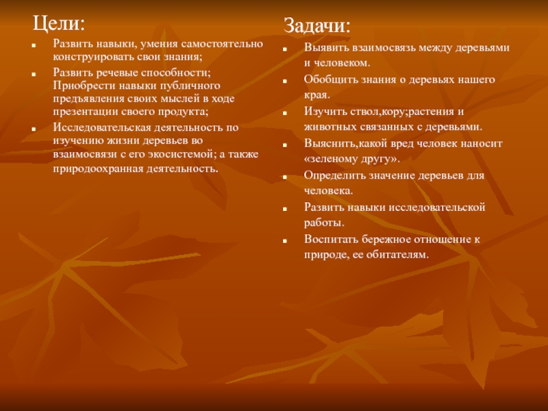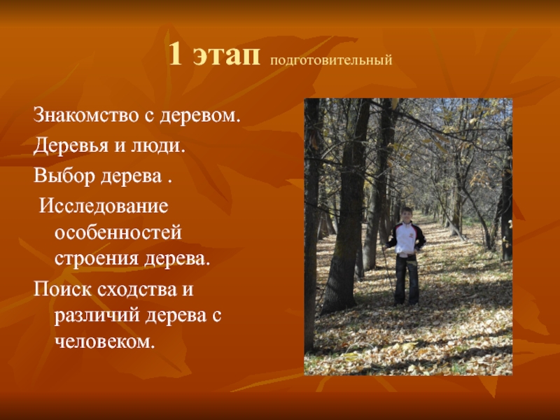 Изучить ствол,кору;растения и животных связанных с деревьями.