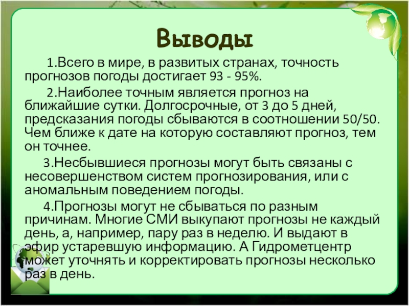 прогнозов погоды достигает 93 - 95%.
