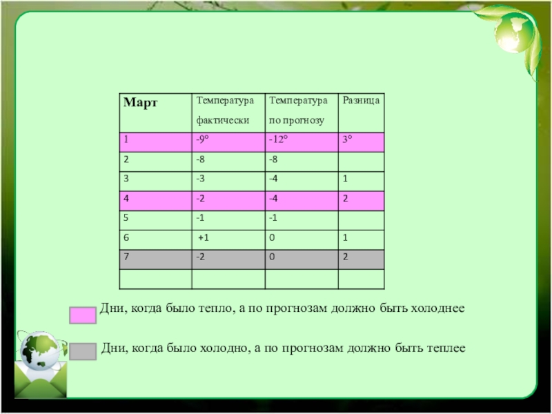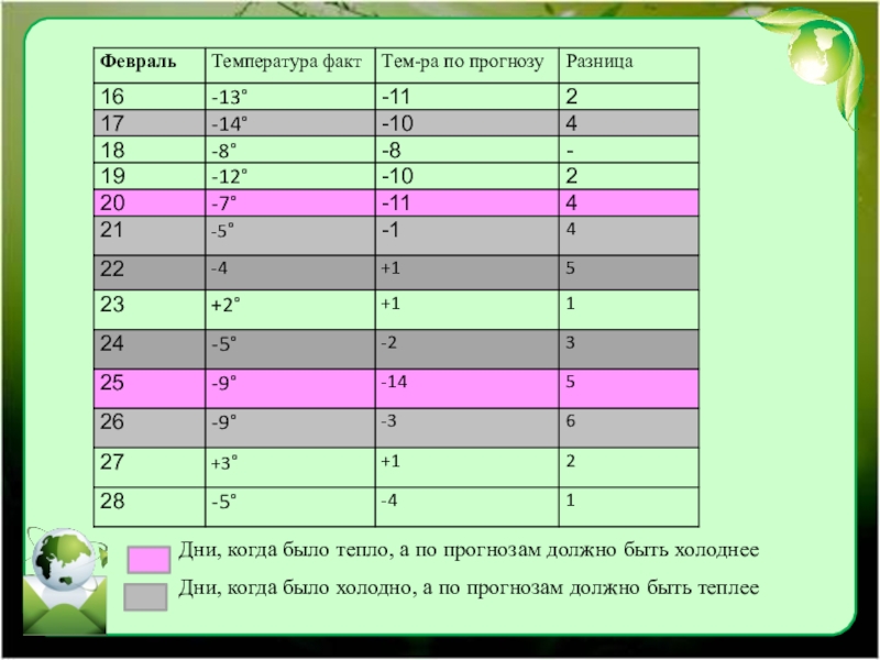 Слайд 17Дни, когда было тепло, а по прогнозам должно быть холоднее