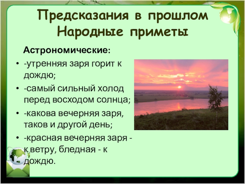 Слайд 8Предсказания в прошлом Народные приметы