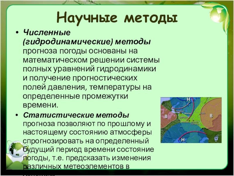 Численные (гидродинамические) методы прогноза погоды основаны на математическом решении системы