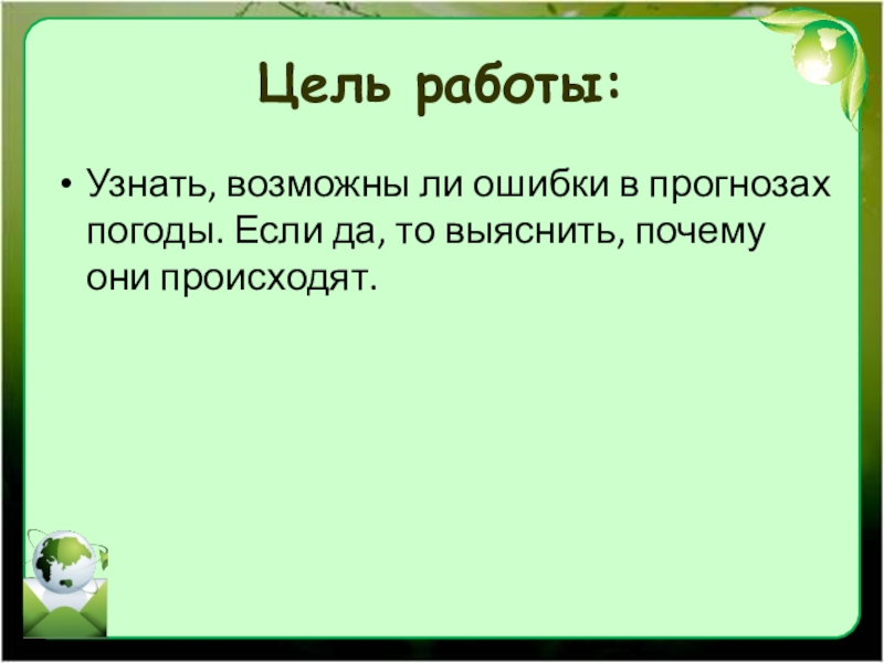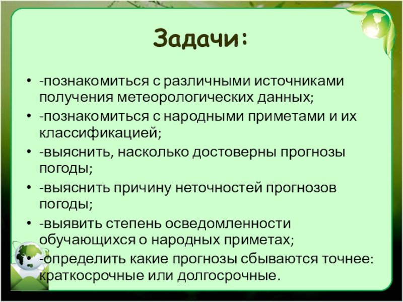 -выяснить причину неточностей прогнозов погоды;