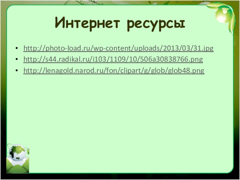 Слайд 21Интернет ресурсы