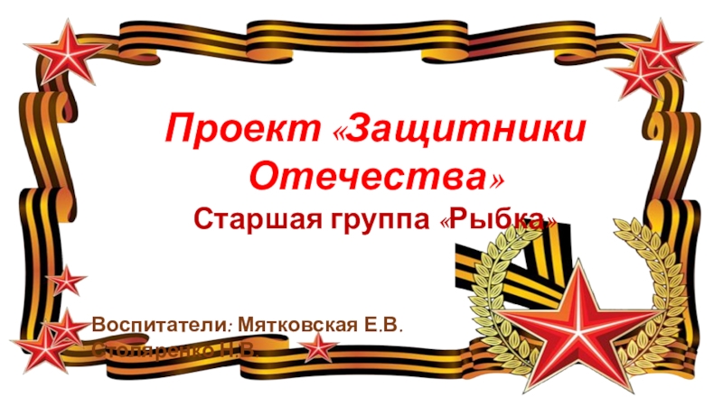 Проект «Защитники Отечества»Старшая группа «Рыбка»Воспитатели: Мятковская Е.В.Столяренко Н.В.