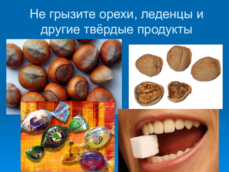 Слайд 31Не грызите орехи, леденцы и другие твёрдые продукты