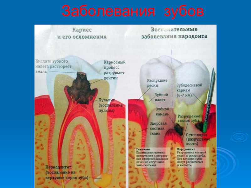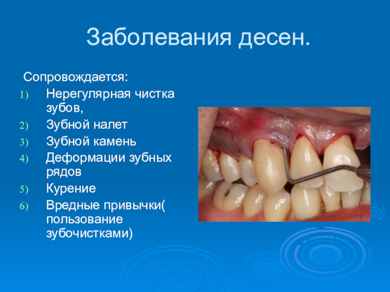 зубного камня на зубах, и в конечном итоге потере зубов вследствие пародонтоза.