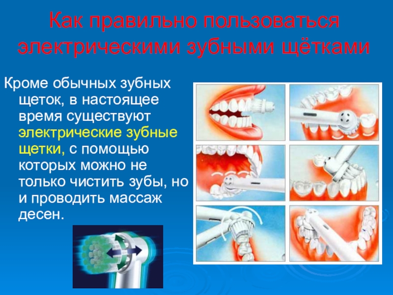 Слайд 22Как правильно пользоваться электрическими зубными щётками